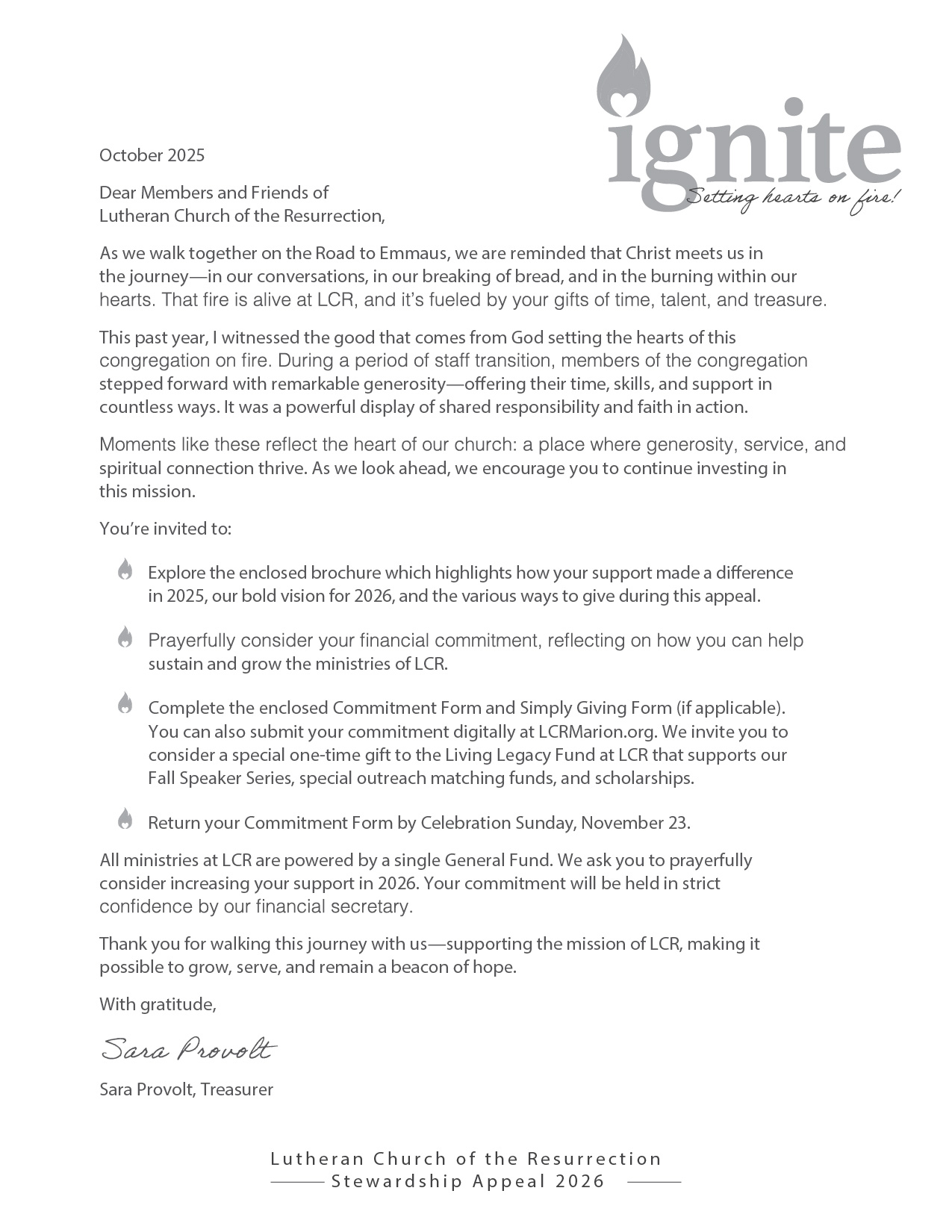 Mail to: Lutheran Church of the Resurrection; attn: Recording Secretary; 3500 29th Avenue; Marion, IA 52302